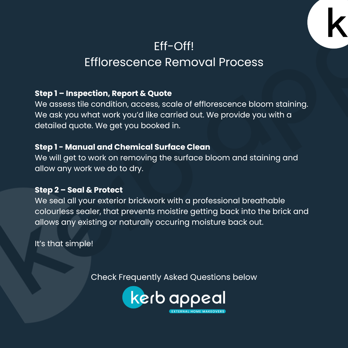 Kerb Appeal’s Eff-Off! Process removes efflorescence safely and restores brickwork to it’s natural colour and brings back your Kerb Appeal.